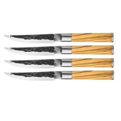 Het merk Forged staat voor een bijzondere en opvallende koksmessencollectie. Door het bijzondere uiterlijk, de mooie verpakking en het volledige handwerk zal dit menig messenliefhebber zijn hart sneller doen laten kloppen. 100% handgesmeed, verpakt in bijzonder gebrand houten kistje. Ieder mes is een UNIEK stuk! Verpakt in een luxe houten kist. NIET vaatwasmachinebestendig. Direct na het afwassen drogen met een doek. De Olive Forged messen collectie is verkrijgbaar als losse messen of als 3-delige messenset. De collectie bestaat uit een: Koksmes, Universeel mes, Hakbijl, Broodmes, Vleesmes, Schilmes.