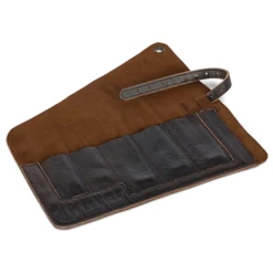 De Petromax Bestek Roltas is ontwikkeld als de ideale kompaan voor bij het Petromax Campingbestek. De tas is gemaakt van hoogwaardig leer en zal tijdens zijn levensduur een prachtig patina ontwikkelen. De binnenzijde van de rol heeft 5 compartimenten en is uitgevoerd in prachtig zachte suède hierdoor zal het bestek niet beschadigen tijdens transport. Verder beschikt de tas over een ingeslagen metalen ophangoog om de tas tijdens transport aan bijvoorbeeld een rugzak te hangen.