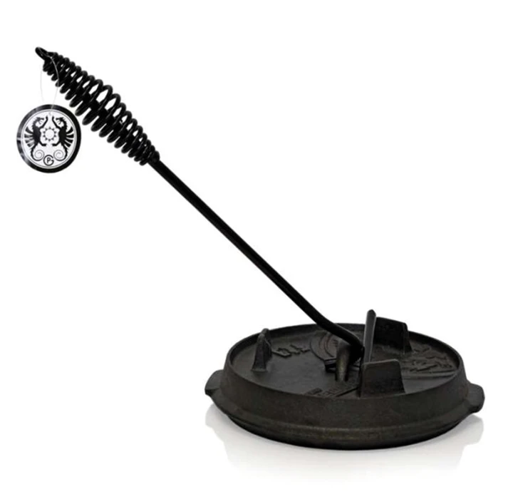 De Petromax coverlifter maakt het simpel en eenvoudig om de deksel van de hete vuur pot te tillen en hem weer terug te zetten.