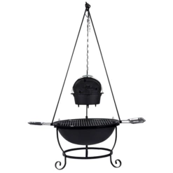 Dat is nu verleden tijd met deze handige kampvuurset! De gietijzeren pan kun je perfect gebruiken als hittebron om je Dutch Oven te verhitten of als bbq grill. In de handige RVS bakjes kun je je gegaarde producten even parkeren of diverse ingrediënten in kwijt. En ben je uitgegeten? Dan heb je een gezellige vuurkorf. Ideaal dus. Bovendien zit de pan in een stevig frame, zodat je perfect onderhouden gras de volgende dag er nog even mooi bij ligt.