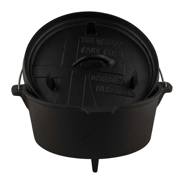 Onze collega Jaco is gek op gietijzer. Het ziet er mooi uit, is duurzaam en heeft gewoon nét even wat meer dan staal of aluminium. Hij had jaren geleden al vele soorten gietijzer in en buitenshuis liggen, je struikelt erover als je bij hem thuis komt! Van aspook tot gigantische ketel en alles ertussenin. Hij kan niet kiezen, dus als het op buiten koken aankomt, dan moet alles er zijn.