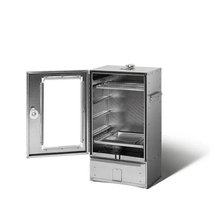 Zeer degelijke Rookoven compleet met diversen roosters, lekbak en thermometer. Geschikt voor koud en warm roken en heeft ruimte voor circa 20 vissen. De rookoven heeft een stabiel slot met sleutel (kindveiligheid!). Extra zware metalen 2.5 mm stooklade.